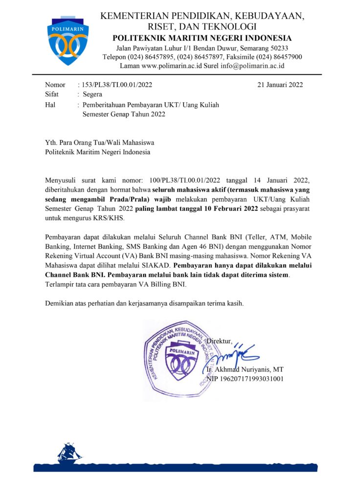 25 Jul, 202325 Jul, 2023 Pemberitahuan Pembayaran UKTSemester Ganjil Tahun Akademik 2023/2024 Read More