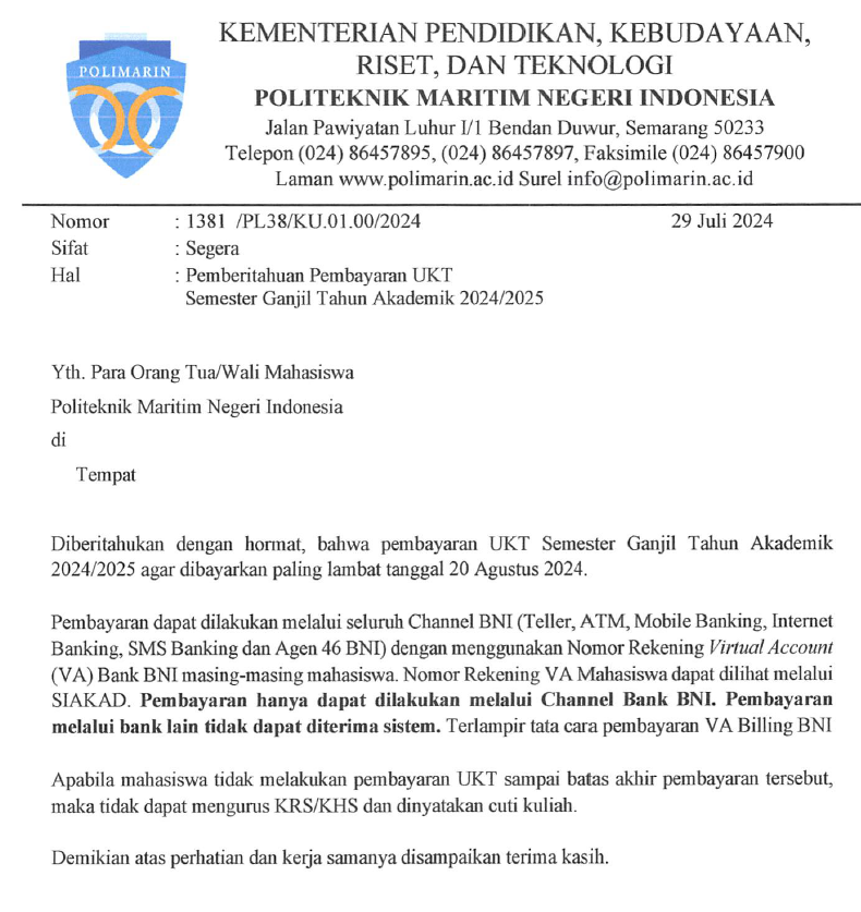 Pemberitahuan Pembayaran UKT Semester Gasal 2024/2025